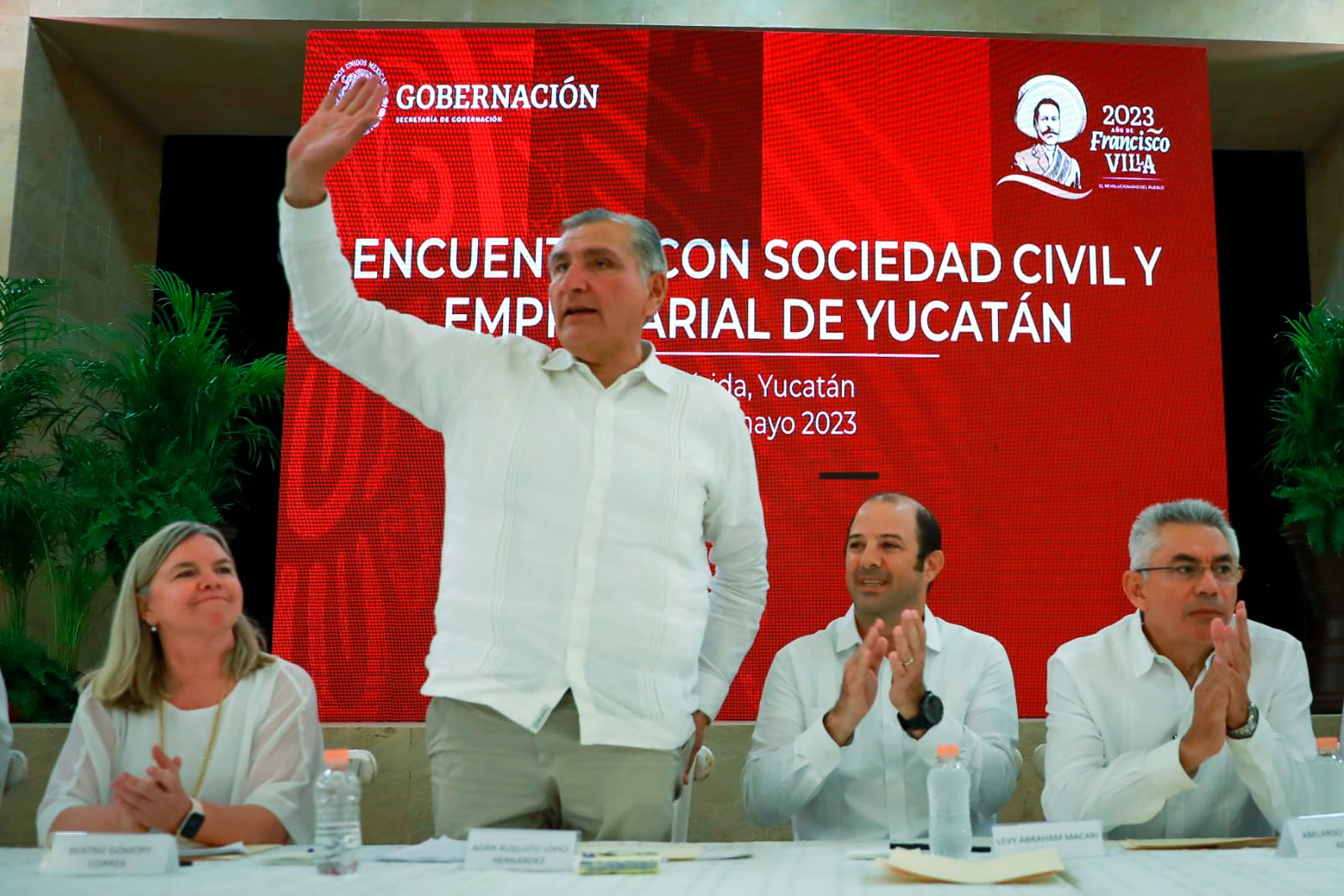 Ciudad de México, a 17 de mayo de 2023.- El secretario de gobernación, Adán Augusto López Hernández participó en un encuentro con representantes de la sociedad civil y empresarios del estado, con la finalidad de anunciar el apoyo del Gobierno Federal para ejecutar la ampliación del Puerto Progreso.