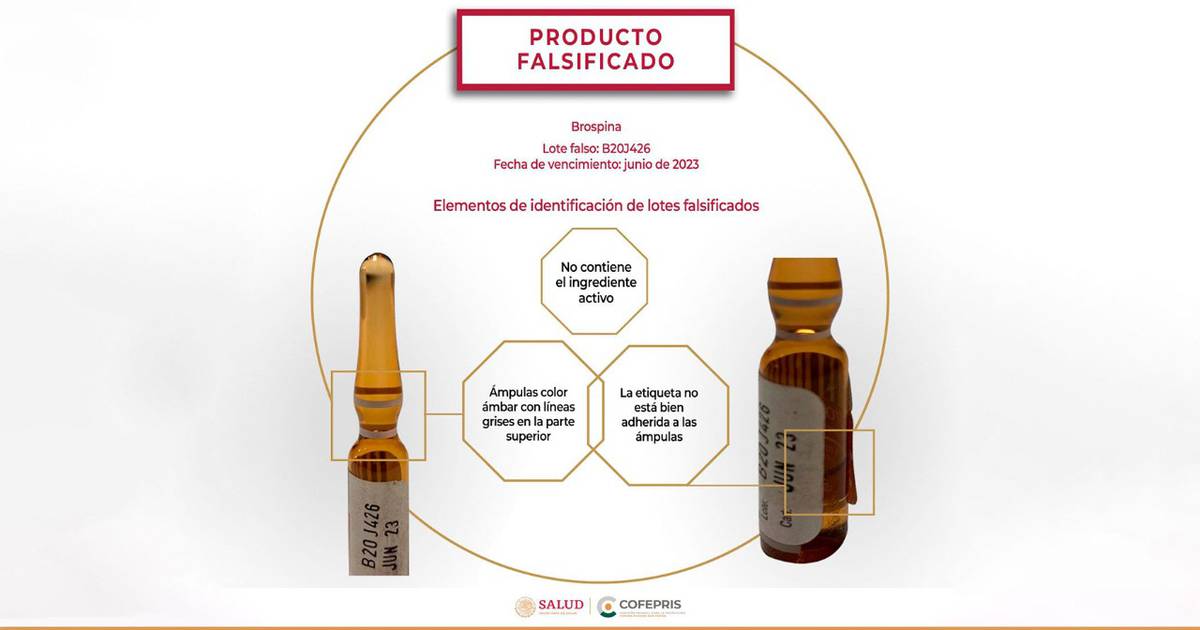 A través de un comunicado, la dependencia federal informó que la falsificación del medicamento denominado Brospina, un analgésico narcótico indicado para el control del dolor de moderado a severo, se dio en el lote B20J426 con fecha de caducidad de junio de 2023.