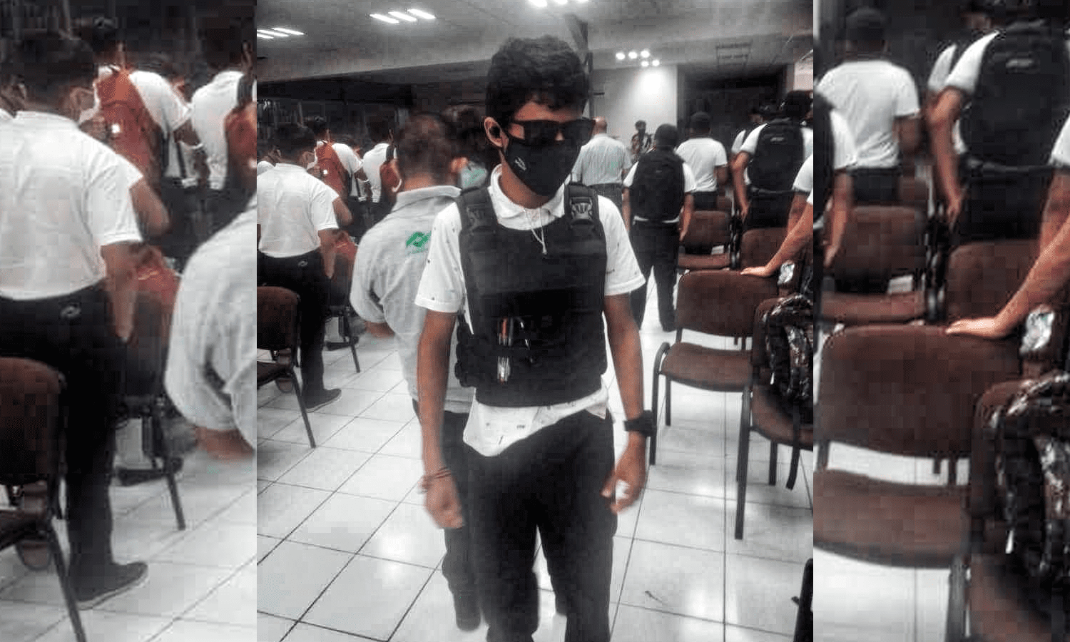 Ante la vestimenta que portaba el joven estudiante, varios de sus compañeros creyeron que se trataba de una prenda protectora contra el impacto de balas, luciendo además gafas oscuras y el uniforme del plantel.