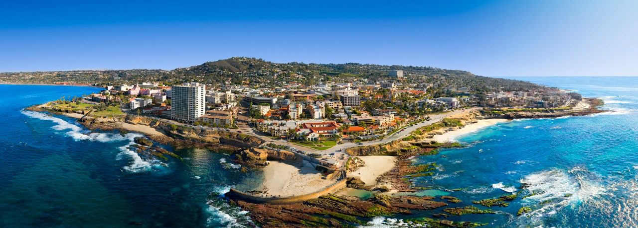 En San Diego, el histórico hotel La Valencia, apodado «Pink Lady», es prácticamente sinónimo de la resplandeciente costa de La Jolla. Desde su posición sobre el famoso La Jolla Cove, los huéspedes del hotel pueden disfrutar de vistas despejadas dignas de fotografías desde casi todas las 114 habitaciones y suites, así como del restaurante en el lugar, La Sala Bar, y el restaurante exclusivo recientemente transformado, el Mediterranean Room.