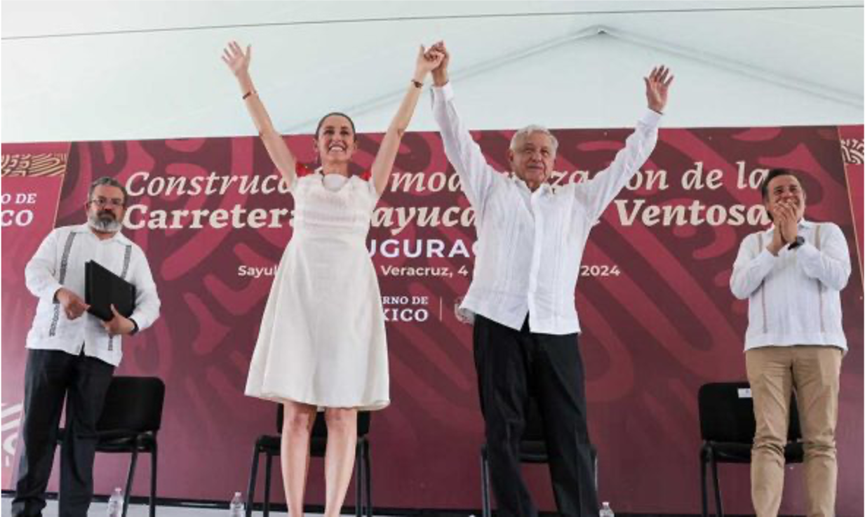 Por su parte, Claudia Sheinbaum prometió continuar con el legado de la Cuarta Transformación (4T) iniciada por López Obrador, asegurando que no habrá traiciones ni retrocesos. «Vengo a decirles que no vamos a traicionar, vamos a seguir con el legado del mejor presidente de México», afirmó Sheinbaum durante la inauguración de la carretera Acayucan-La Ventosa.