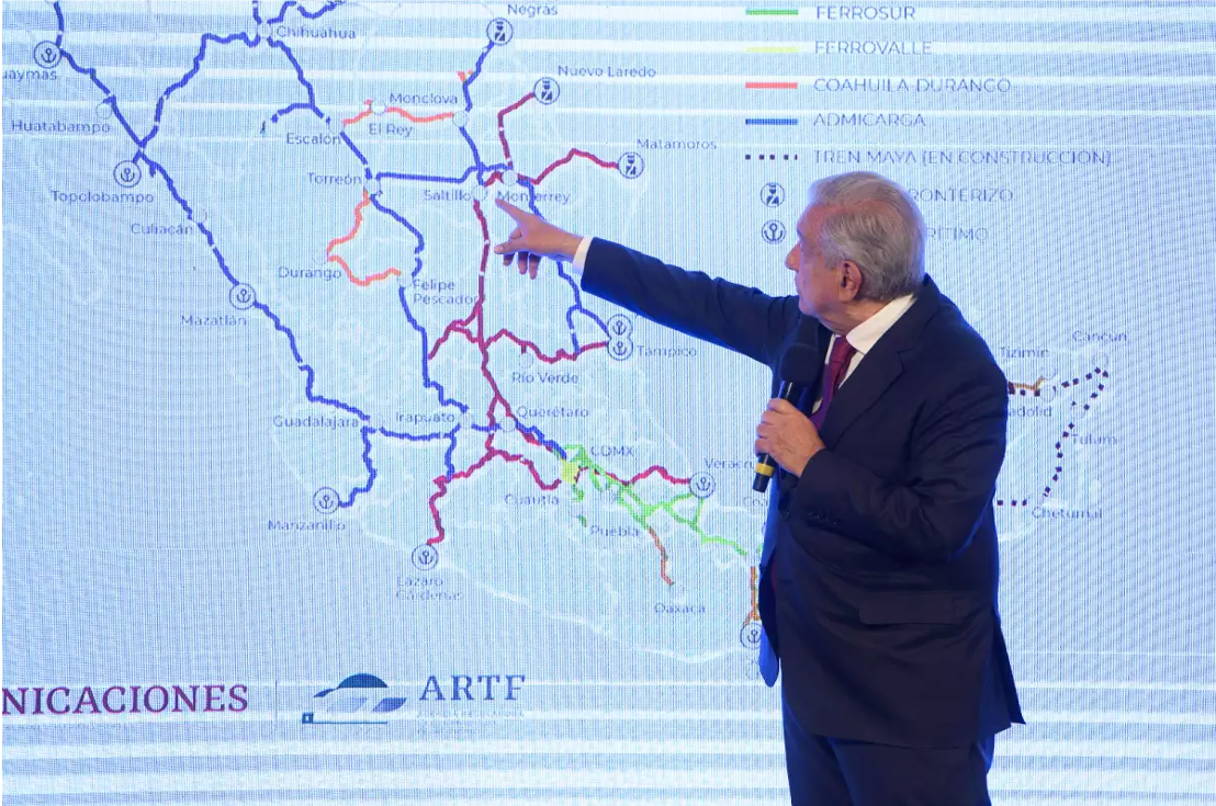 El presidente López Obrador descubrió hace seis meses que las vías de ferrocarril existentes en el país, que actualmente están concesionadas para el transporte de carga, pueden utilizarse también para trenes de pasajeros.