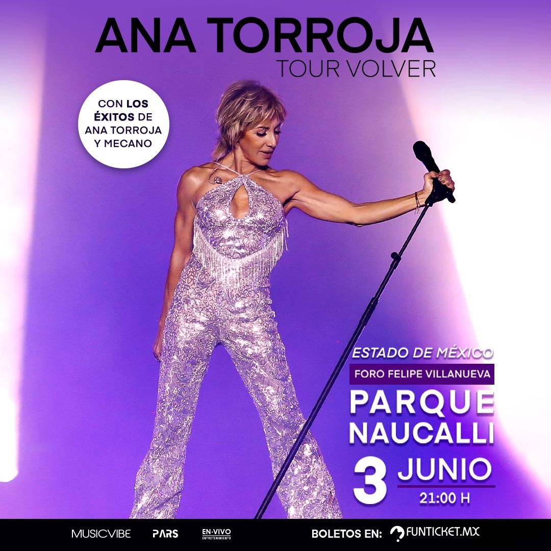Ana Torroja trae su tour «Volver» al Parque Naucalli en el Foro Felipe Villanueva el próximo Sábado 03 de Junio con un concierto único y muy especial. Este evento incluirá todos los éxitos de Mecano y de su carrera solista. Los boletos estarán a la venta a partir del 17 de abril en www.funticket.mx