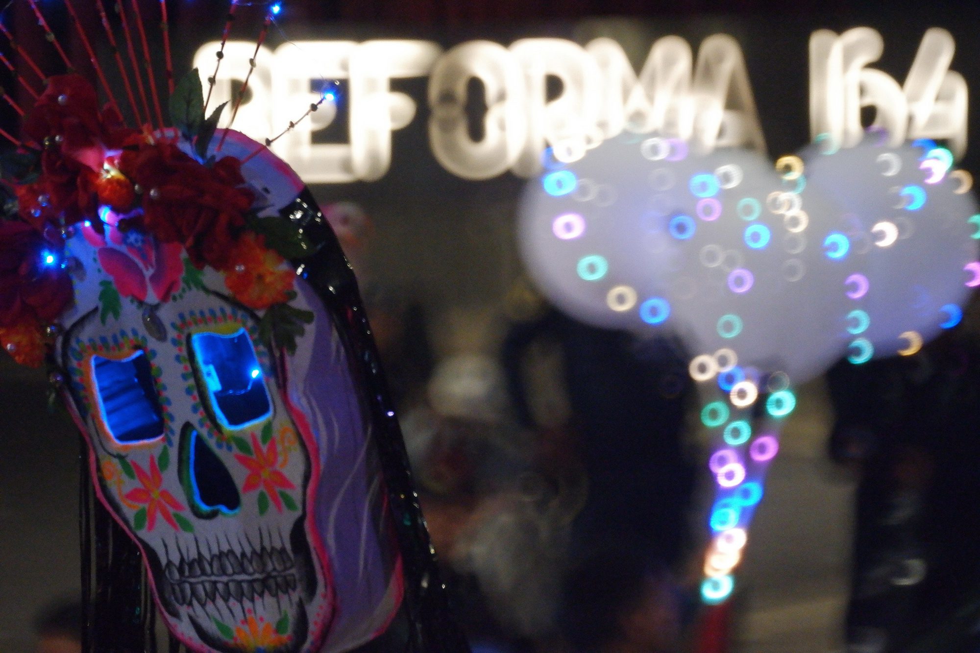 Vistas de la mega marcha de catrinas 2022. Sobre paseo de la Reforma Miles de personas se dieron cita para ver desfilar catrinas, además de irse a maquillar, comer y con vivir sobre la avenida más grande de la Ciudad de México. Fotos Bruno Cortés / Maya Comunicación