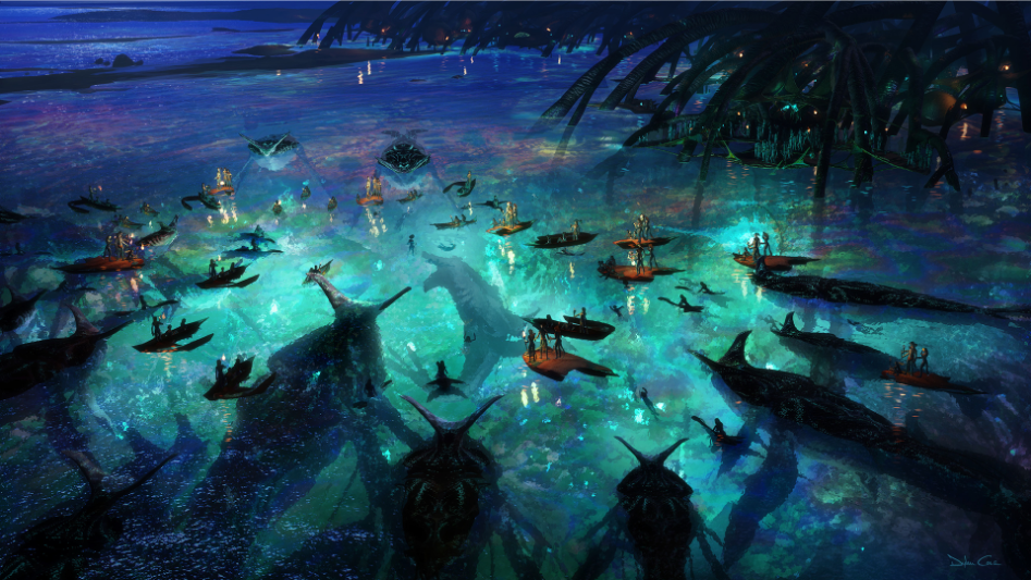 Además, el público podrá reencontrarse con el clan Metkayina, introducido en Avatar: El Camino del Agua, en una secuencia que muestra a los Na’vi rodeados de criaturas marinas, destacando la conexión cultural de estos clanes con el agua y la vida marina.