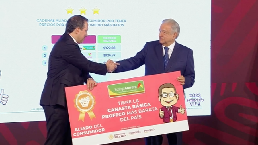 Sheffield Padilla también reconoció a Soriana y Chedraui por vender la canasta básica a los precios más bajos, con un precio promedio nacional de 926,57 pesos y 929,72 pesos, respectivamente.