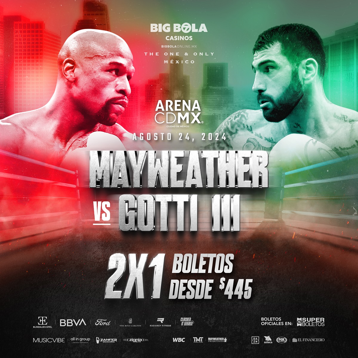 ¡La Arena CDMX se prepara para recibir una noche de boxeo épico el próximo sábado 24 de agosto! La esperada función contará con un enfrentamiento estelar que hará historia, con Floyd Mayweather enfrentando a John Gotti III en un combate que promete ser inolvidable. Pero eso no es todo, ya que el evento también presentará emocionantes peleas en la cartelera coestelar, incluyendo un enfrentamiento entre el mexicoamericano Victor Ortiz y el argentino Rodrigo Damián Coria.
