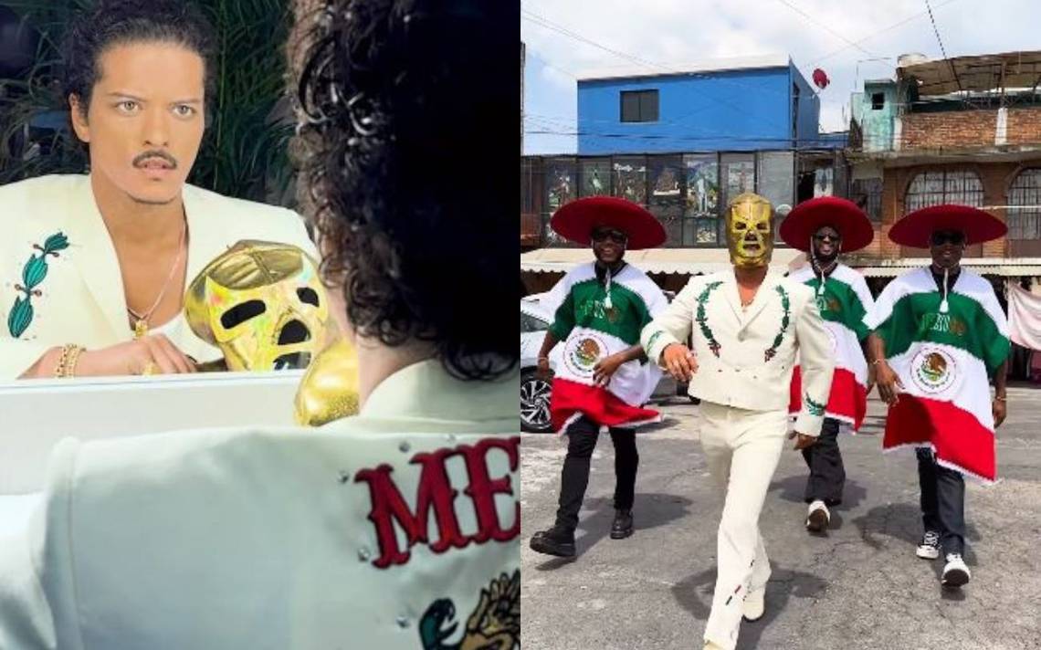 El cantante estadounidense sorprendió al público mexicano con un divertido y emotivo video en el que rinde tributo a algunos de los elementos más icónicos de la cultura mexicana. En el clip, Bruno Mars aparece vestido con un elegante traje blanco bordado con motivos mexicanos, mientras sostiene una máscara dorada de lucha libre, un símbolo profundamente arraigado en la identidad nacional. Sentado frente a un espejo, el artista se coloca la máscara y, transformado en «El Capitan Fuego», sale a recorrer las vibrantes calles de la Ciudad de México, bailando y cantando al ritmo de mariachi, acompañado por sus músicos, quienes también lucen atuendos tradicionales.