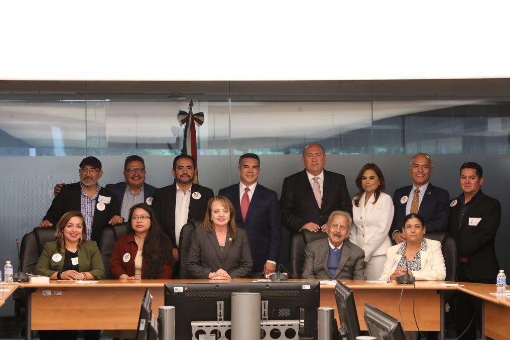 La diputada migrante María Elena Serrano gestionó un encuentro de la Delegación del Colectivo de Federaciones y Organizaciones Mexicanas Migrantes en Estados Unidos con el líder nacional, Alejandro Moreno, y el coordinador parlamentario, Rubén Moreira, del Partido Revolucionario Institucional, a fin de escuchar sus necesidades y propuestas para que sean tomadas en cuenta en los planteamientos que habrán de presentar en el periodo de sesiones que está por iniciar.