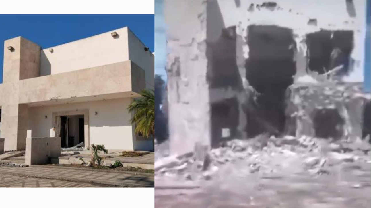 Sinaloa a 1 de agosto, 2024.- La capilla familiar de Dámaso López Núñez, conocido como ‘El Licenciado’, ubicada en la localidad de Eldorado, Sinaloa, ha sido blanco de actos vandálicos nuevamente. En esta ocasión, los daños han sido aún más devastadores, dejando la estructura prácticamente en ruinas.