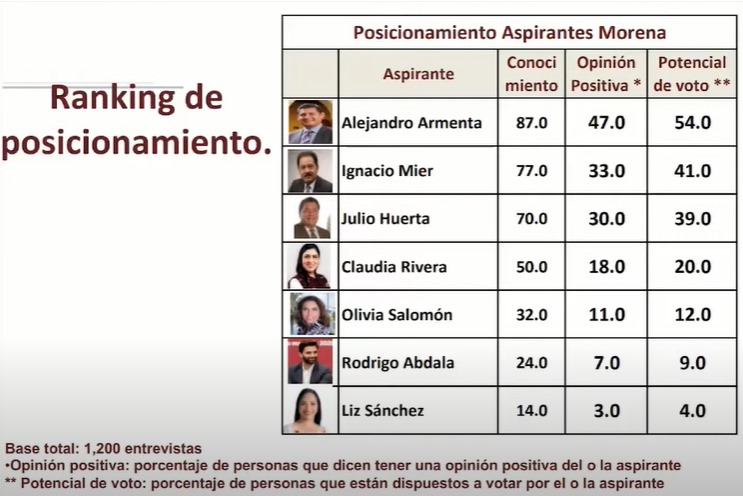 Según datos de la empresa Indicadores, la encuesta realizada entre el 2 y el 4 de noviembre de 2023 a una muestra representativa de mujeres y hombres mayores de 18 años en 95 municipios vía telefónica fija, ha revelado que Alejandro Armenta disfruta de una ventaja significativa de 13 puntos sobre su competidor más cercano en la medición de intención de voto. Además, en términos de conocimiento, la brecha se amplía a 10 puntos, consolidando aún más su posición como el candidato más reconocido entre la población.