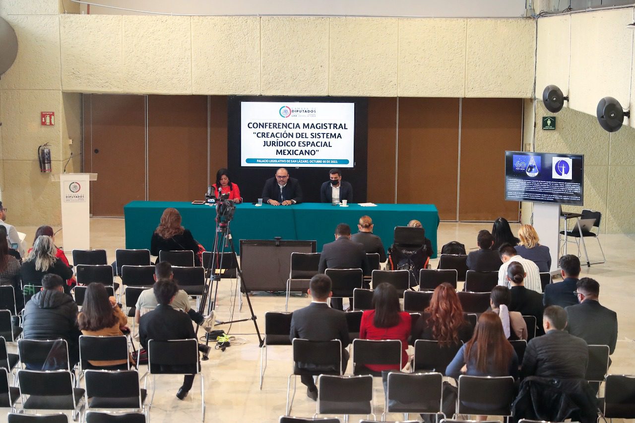 CDMX a 5 de octubre, 2022.- Como parte de los trabajos de la Semana Mundial del Espacio, México 2022 “El espacio y la sostenibilidad”, se llevó a cabo en su segundo día la Conferencia magistral “Creación del sistema jurídico espacial mexicano”, durante la cual se destacó que ante las crecientes actividades ultraterrestres nuestro país no puede quedarse atrás.