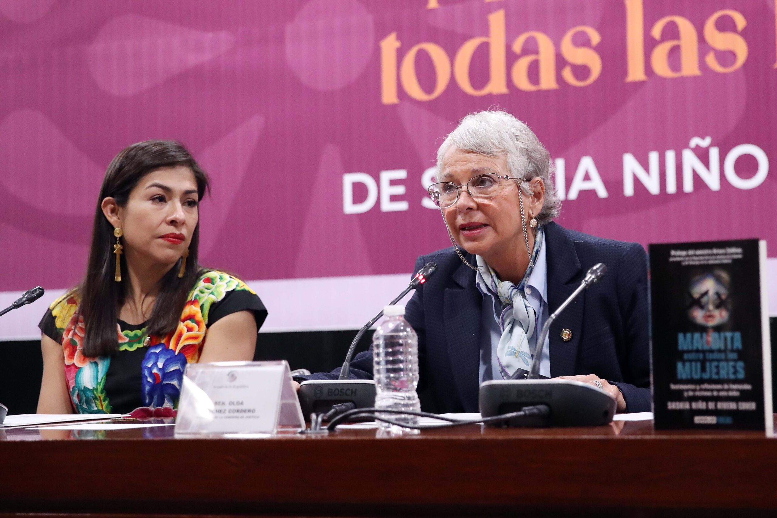 CDMX a 28 de octubre, 2022.- En la presentación del libro “Maldita entre todas las mujeres”, de Saskia Niño de Rivera, las senadoras Gabriela López Gómez y Olga Sánchez Cordero insistieron en que para abatir la impunidad de los feminicidios es necesario homologar el tipo penal en todas las entidades de la República.