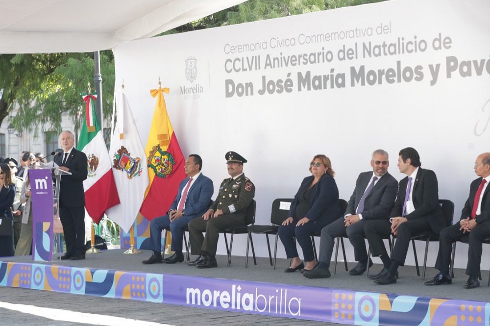 Como orador en la Ceremonia Cívica Conmemorativa con motivo del CCLVII Aniversario del natalicio del Generalísimo Don José María Morelos y Pavón, realizada en Morelia, Michoacán, indicó que los ideales del Cura de Carácuaro, son los que nos guían en la construcción de la patria que hoy tenemos y la que deseamos.