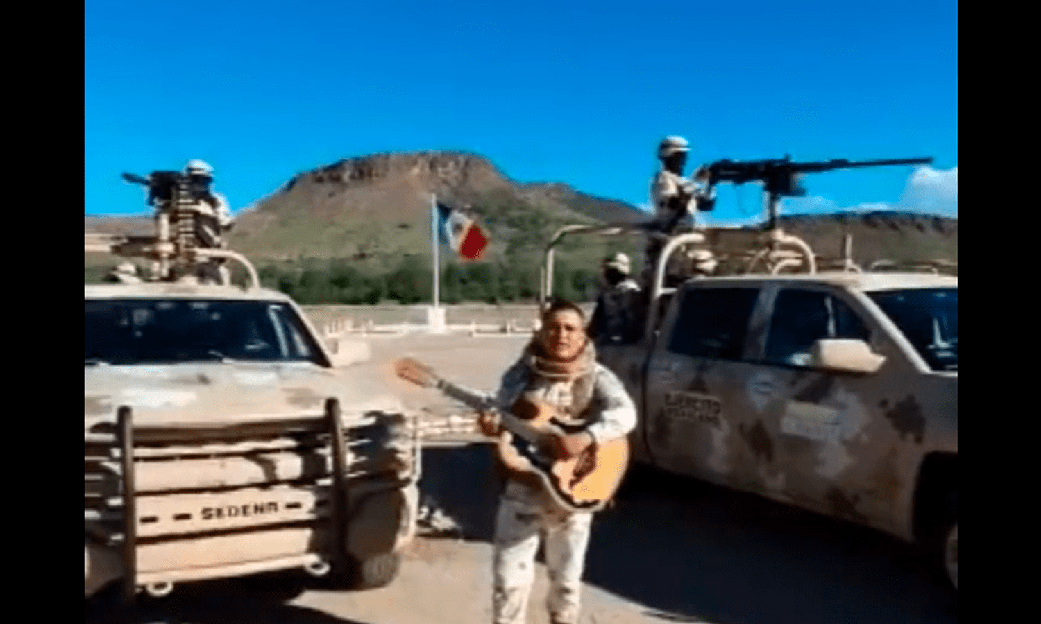 En el video del soldado, se observa a él (con guitarra en mano) en medio de dos camionetas del Ejército mexicano con sus artillerías y dos efectivos arriba de las unidades; de fondo se ve la bandera de México.