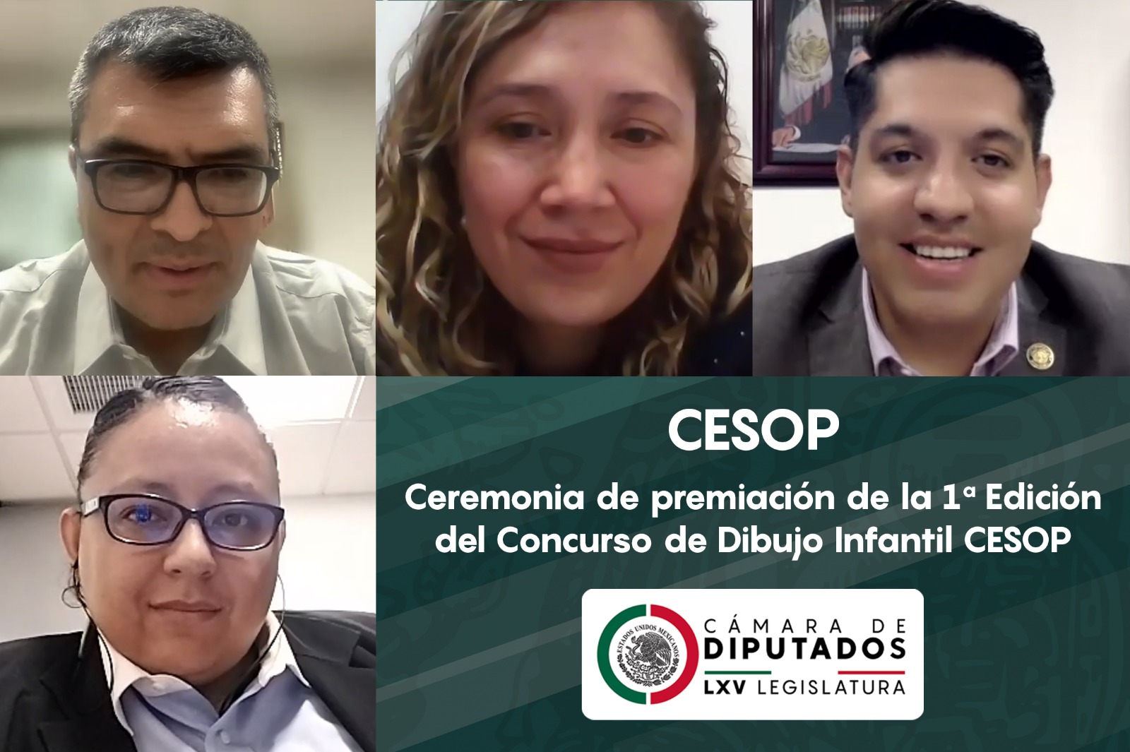 Ciudad de México, a 5 de mayo de 2023.- El Centro de Estudios Sociales y de Opinión Pública (CESOP) de la Cámara de Diputados realizó la ceremonia virtual de Premiación de la Primera Edición del Concurso de Dibujo Infantil, donde fueron galardonados las niñas y los niños que plasmaron su inspiración a partir de la pregunta: ¿Me gustaría ser diputada o diputado para…?