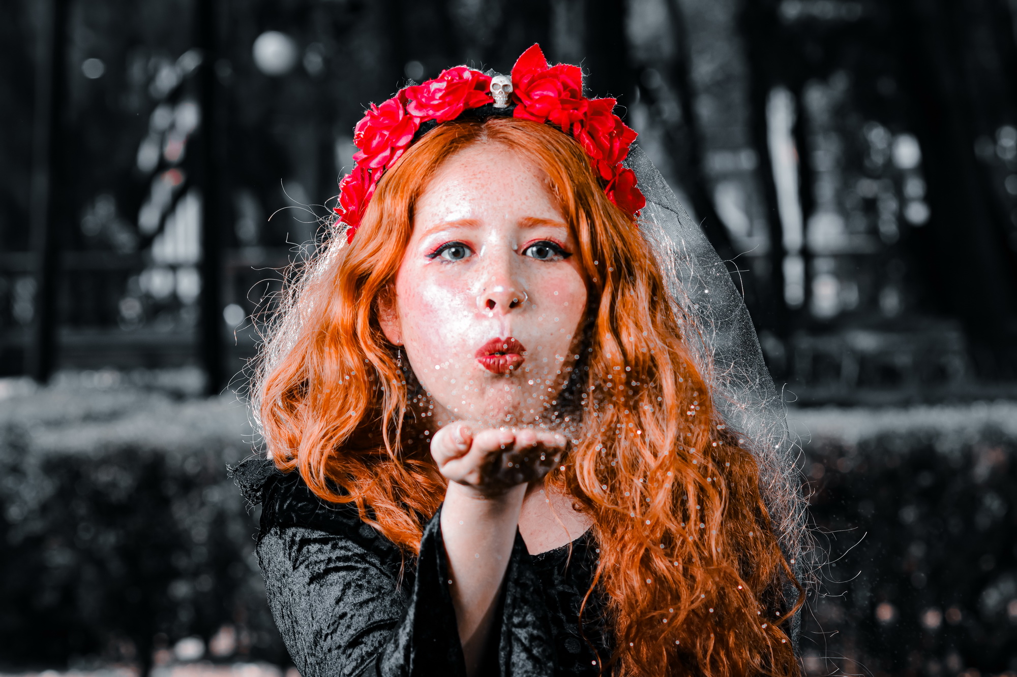 En el parque de los murmullos y los perros sin correa, aparecía cada domingo una joven pelirroja con corona de flores rojas y una expresión decididamente feliz para alguien que se dedicaba a lanzar maldiciones. Se llamaba Jessi Snow y decía ser bruja freelance, especializada en encantamientos breves y malestares digestivos.