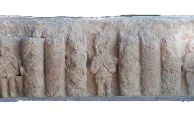 La primera estructura, hallada en el cuarto central del monumento, tiene 15 elementos decorativos distribuidos consecutivamente, incluyendo columnillas trenzadas y figuras antropomorfas. Estas figuras, en posición erguida y con vestimenta detallada, podrían estar asociadas a rituales funerarios.