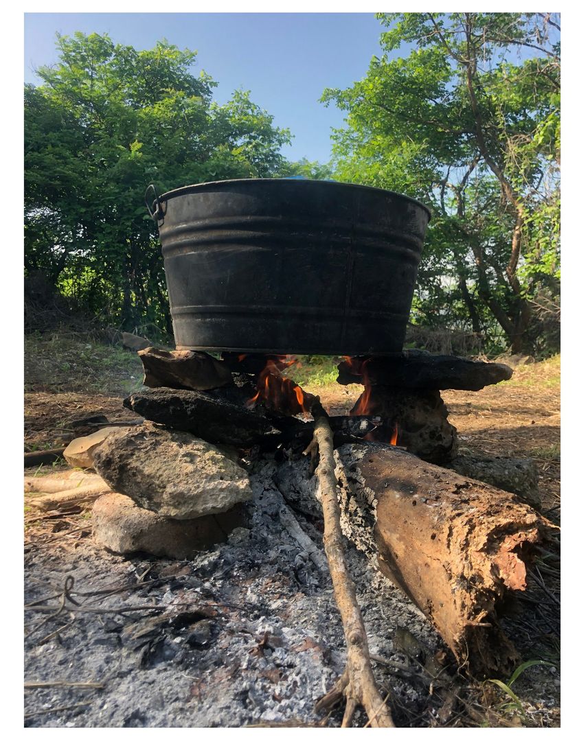 El sazón consiste en la carga erótica de quien cocina, de ello no hay duda, por ello cuando preparo algo por sencillo que sea me sale exquisito, claro que existen saberes para enfatizar ese sabor, y estos saberes son precisamente los secretos de la cocina, uno de ellos es precisamente cocinar con leña, en este caso como es una cantidad abundante lo hacen con tinas como la presente.