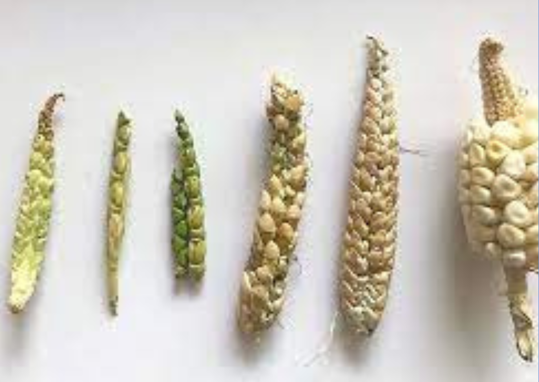 Uno de los rasgos distintivos del teosinte son las pequeñas mazorcas que produce, que contienen granos negros, duros y con cáscara. Estas mazorcas primitivas son un vestigio de la transformación gradual que experimentó el teosinte a manos de los agricultores precolombinos.