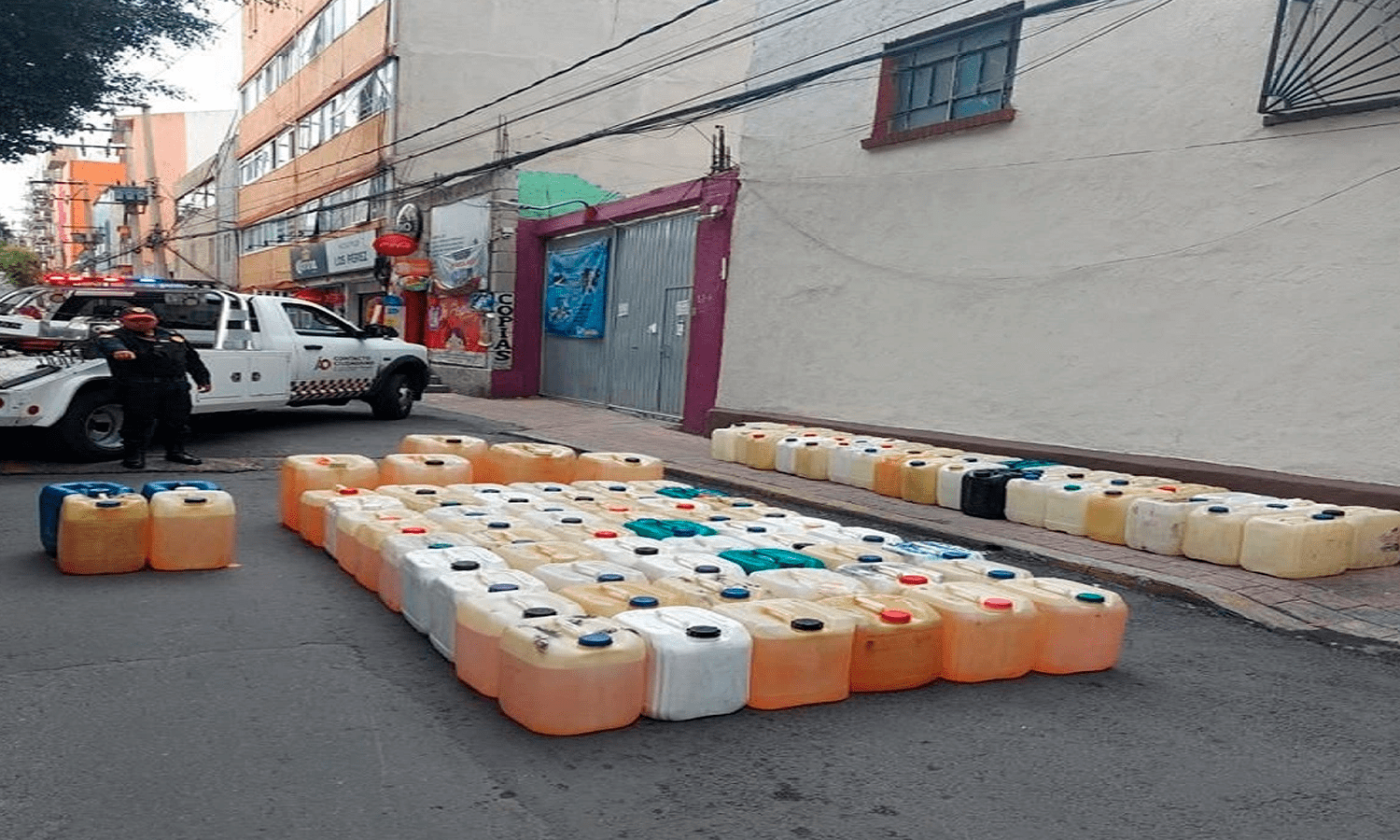 Atendiendo a la denuncia de vecinos de la Colonia Tlacoyaque, policías de proximidad reconocieron dos camionetas descritas por los ciudadanos, en las que encontraron, en una, 29 garrafones con capacidad para 20 litros y 5 garrafones con capacidad para 60 litros, varios de ellos con gasolina; en el segundo vehículo, había 50 garrafones con capacidad para 20 litros, también algunos con gasolina. En total, aproximadamente mil 300 litros de combustible.