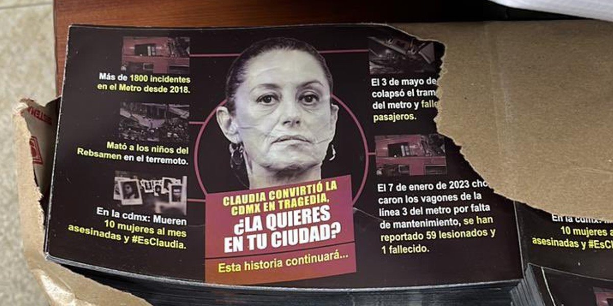 Miles de decenas con rostro de Sheinbaum utiliza el tema de los siniestros en el Metro, el derrumbe del Colegio Rébsamen y los feminicidios para señalar que «Claudia convirtió la CDMX en tragedia».