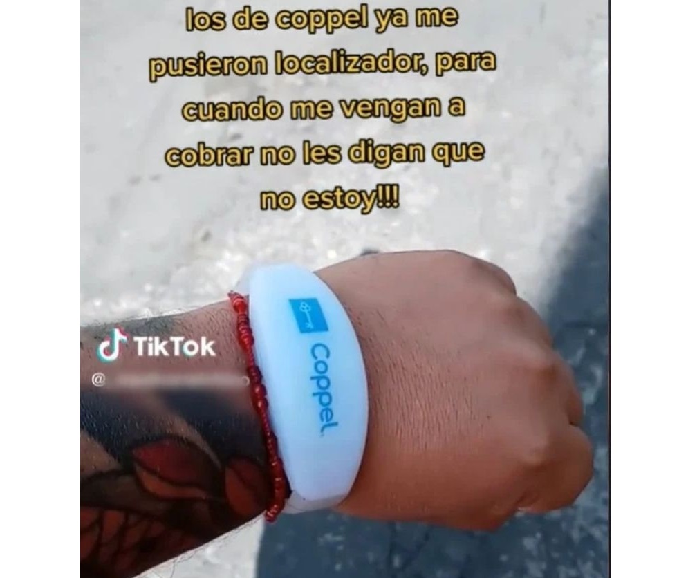 De acuerdo con el usuario @medicenelchino, este brazalete localizador le fue puesto en la muñeca para que no se oculte cuando Coppel acuda a su casa a cobrarle sus deudas. Según el usuario se trata de una pulsera GPS la cual muestra a la tienda en donde se encuentra el deudor y cada vez que acudan a cobrarle este no tenga opción más que pagar; se trata de un objeto que se colocará a los deudores.