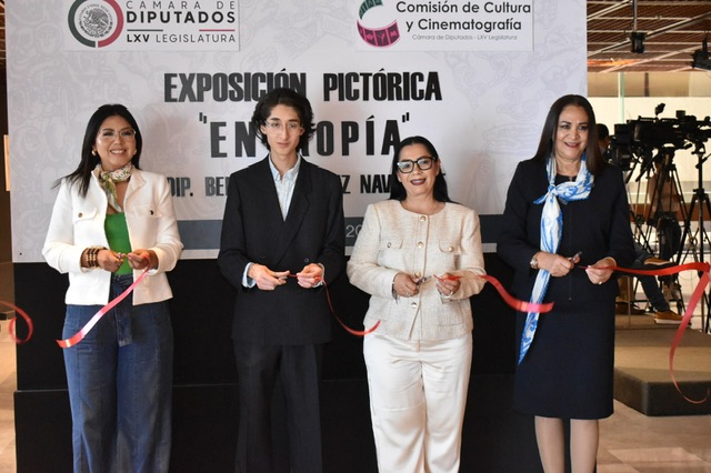 CDMX a 10 de abril, 2024.- La Cámara de Diputados, un espacio donde resuenan las voces y decisiones que moldean el futuro de México, ha abierto sus puertas a una experiencia artística sin precedentes. La exposición pictórica “Entropía”, curada y protagonizada por el joven y prometedor artista Juan Padilla Pérez, es un testimonio de la intersección entre el arte, la política y la sociedad. Berenice Juárez Navarrete, diputada federal por el PAN y miembro activo de la Comisión de Cultura y Cinematografía, ha sido la promotora de este evento que marca un precedente en la inclusión del arte joven en espacios de poder.