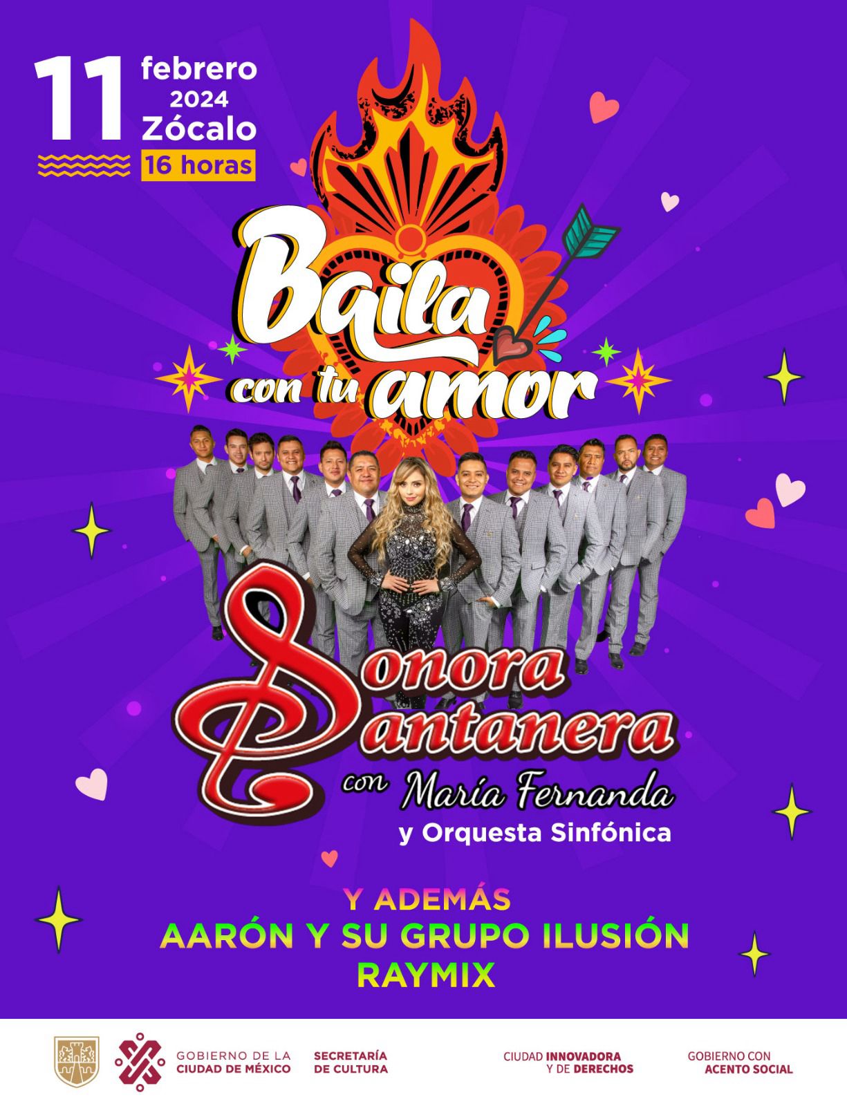 El domingo 11 de febrero, el Zócalo vibrará al ritmo de «Baila con tu Amor», un espectacular concierto gratuito protagonizado por la Sonora Santanera de Carlos Colorado y María Fernanda, Aarón y su Grupo Ilusión, y Raymix. Este evento, que celebra el Día del Amor y la Amistad, no solo rendirá homenaje a los 70 años de trayectoria de la Sonora Santanera, sino que también la reconocerá como Patrimonio Cultural Vivo de la Ciudad de México.