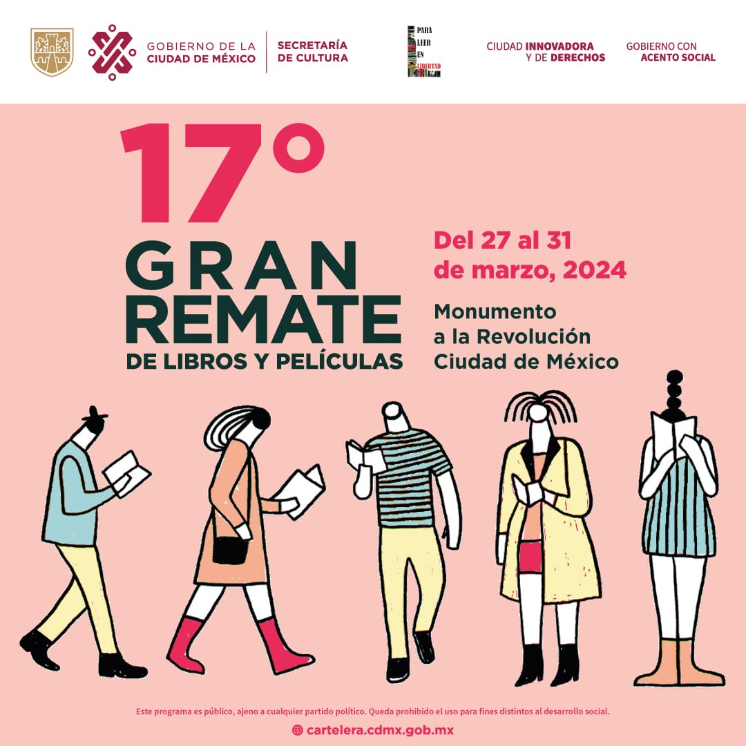 CDMX a 23 de marzo de 2024.-La Secretaría de Cultura de la Ciudad de México, en colaboración con la Brigada para Leer en Libertad A.C., ha anunciado la decimoséptima edición del Gran Remate de Libros y Películas, programada para llevarse a cabo del 27 al 31 de marzo en el icónico Monumento a la Revolución. Con la participación de más de 197 expositores y 300 sellos editoriales, este evento promete ser una celebración de la literatura y el cine accesible para todos los habitantes de la capital mexicana.