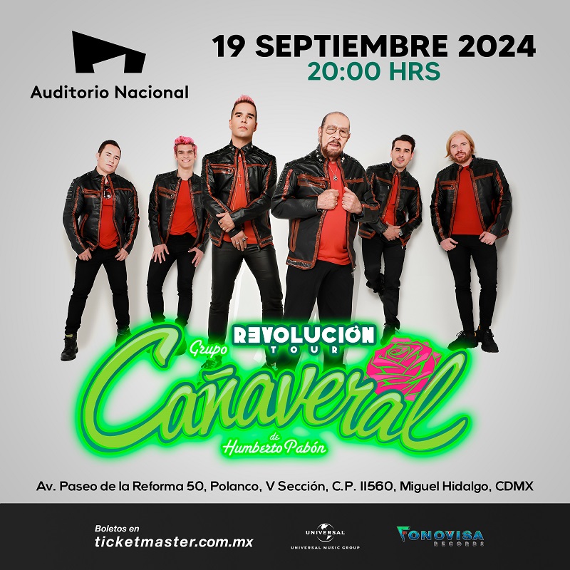 CDMX a 2 de abril de 2024.-El emblemático Auditorio Nacional de la Ciudad de México se prepara para recibir a una de las agrupaciones más representativas de la cumbia en México: Grupo Cañaveral. Con su «Revolución Tour», el jueves 19 de septiembre de 2024, a las ocho de la noche, el recinto abrirá sus puertas para dar paso a una noche cargada de ritmo, alegría y nostalgia.