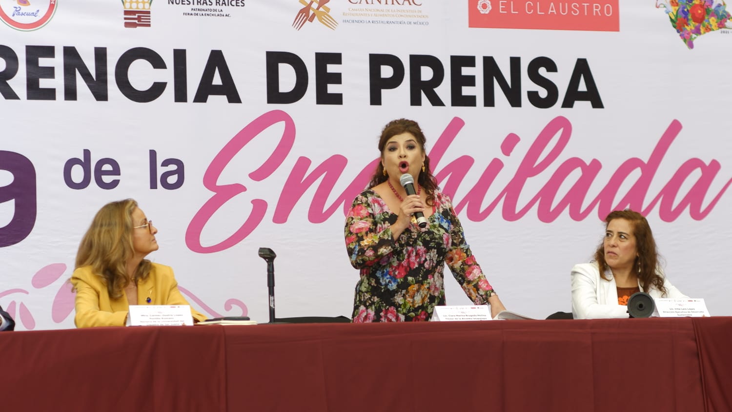 Por su parte, la rectora del Claustro de Sor Juana indicó que en el plantel se imparte la carrera de gastronomía desde hace 30 años, en los que se han hecho convenios con la Canirac a favor de la Cocina Mexicana, como el premio a la excelencia restaurantera, y celebró que el Claustro fuera sede de la presentación de esta 20ª edición de la Feria de la Enchilada.