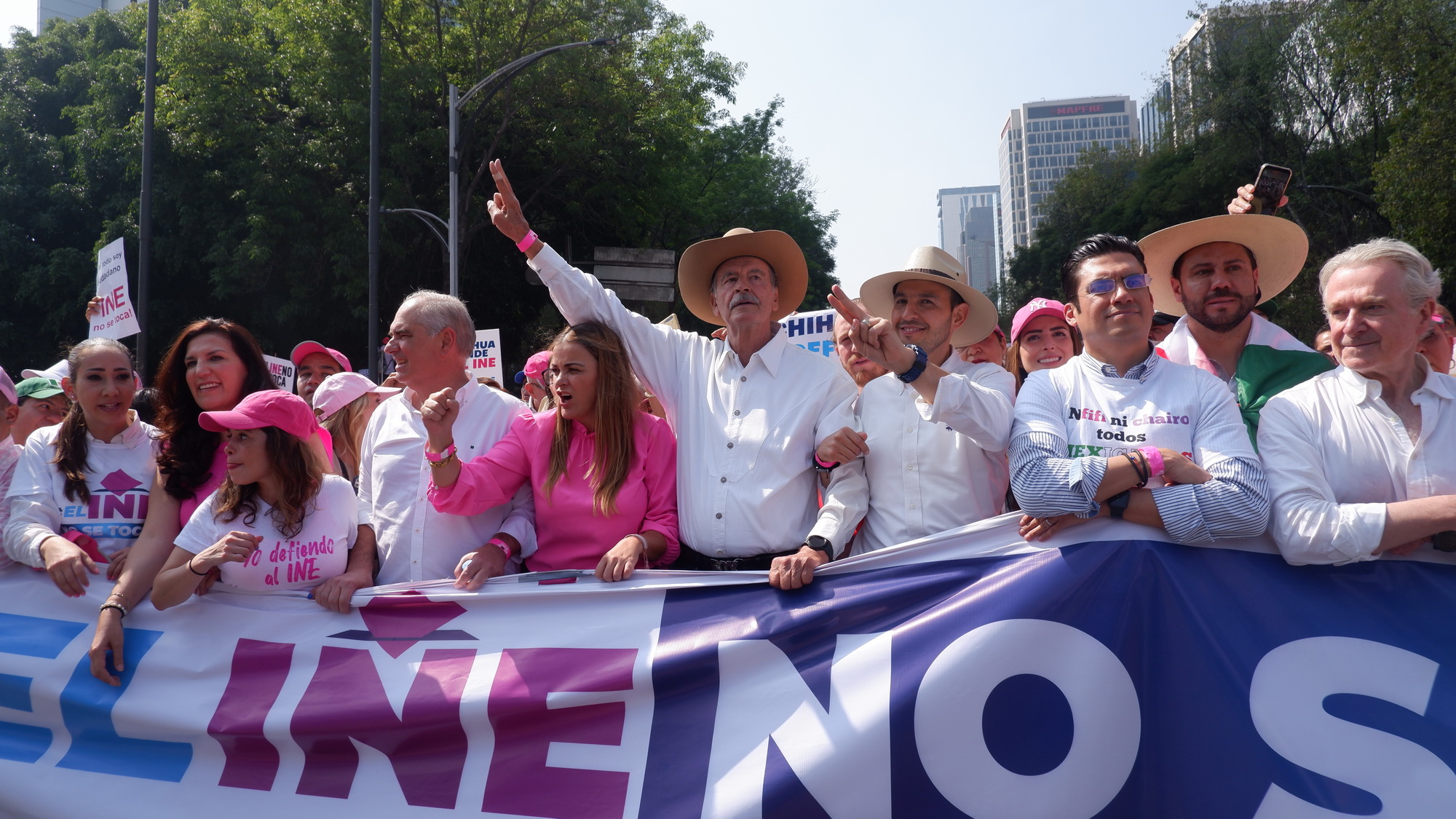 “Aquí estamos la gente de bien diciendo con claridad que el INE no se toca, que cuidaremos la libertad, la democracia y aquí están nuestros diputados y diputadas federales y nuestros senadores. Porque lo que nosotros mostraremos hoy en la calle lo vamos a sostener en el congreso, vamos a cuidar al INE”.