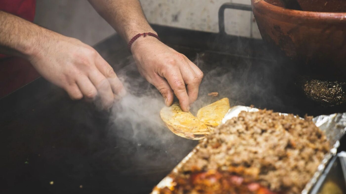 Tacos (México): tortillas de maíz rellenas de carne, pollo o verduras, que se acompañan con salsa y guacamole.