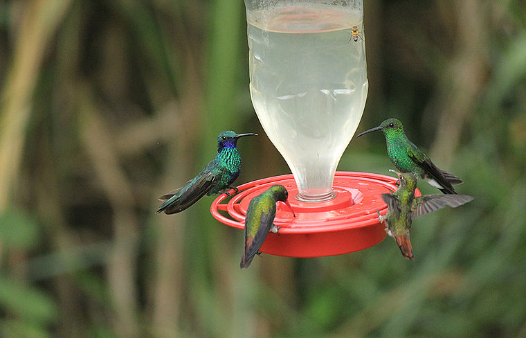 Otro problema significativo es la contaminación cruzada que ocurre cuando múltiples colibríes y otras aves comparten el mismo bebedero. Esto facilita la transmisión de enfermedades, como la aspergilosis, una infección respiratoria grave.