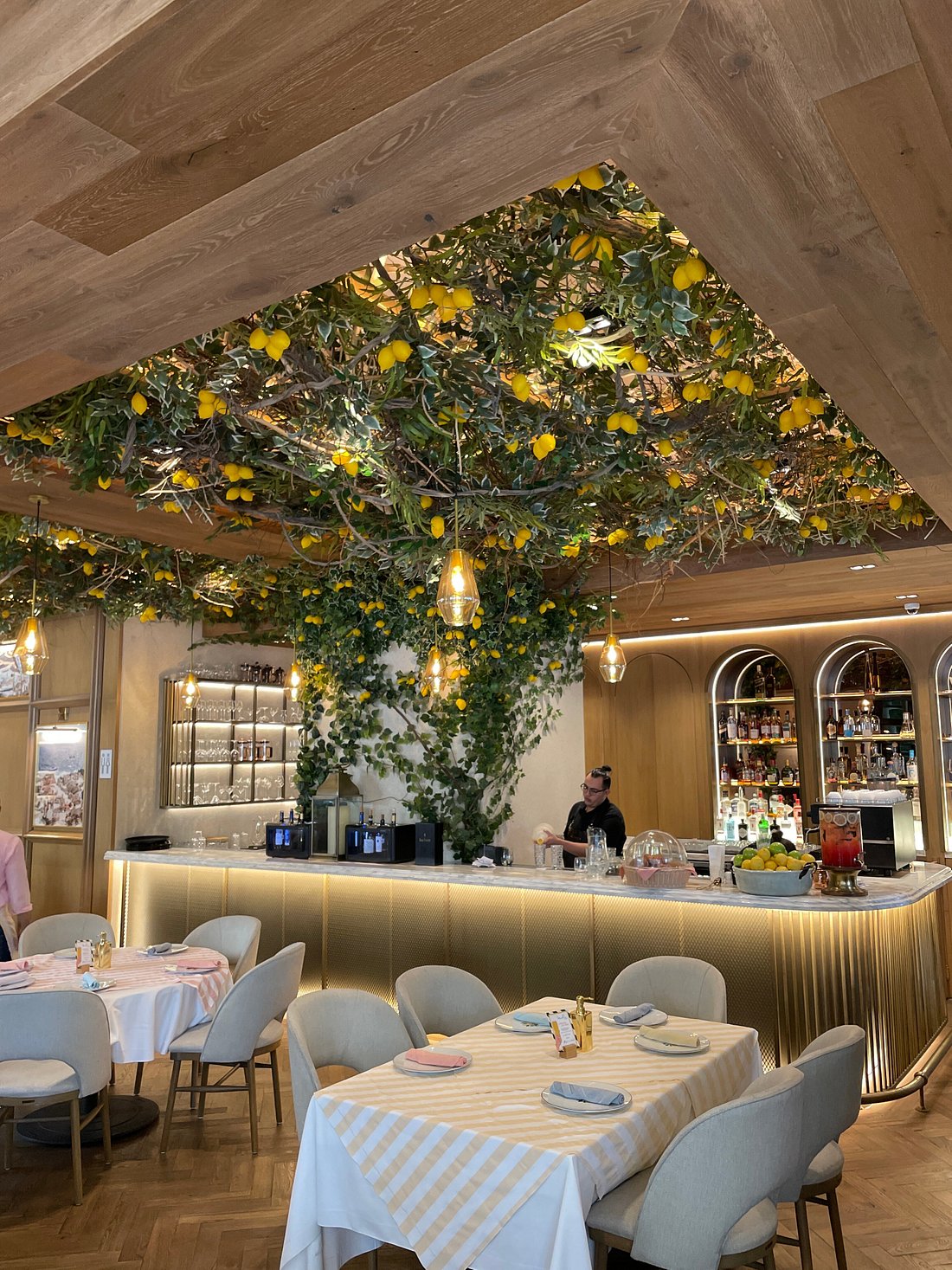 Imagina caminar por las calles de Amalfi: limones por doquier, una brisa fresca y una sensación de calma absoluta. Bueno, eso es justo lo que Mandolina busca evocar con su decoración. Más de 5,000 limones decoran el techo, creando una atmósfera única y romántica que invita a quedarse horas. La terraza es un must para desayunos perezosos o cenas íntimas bajo las luces.