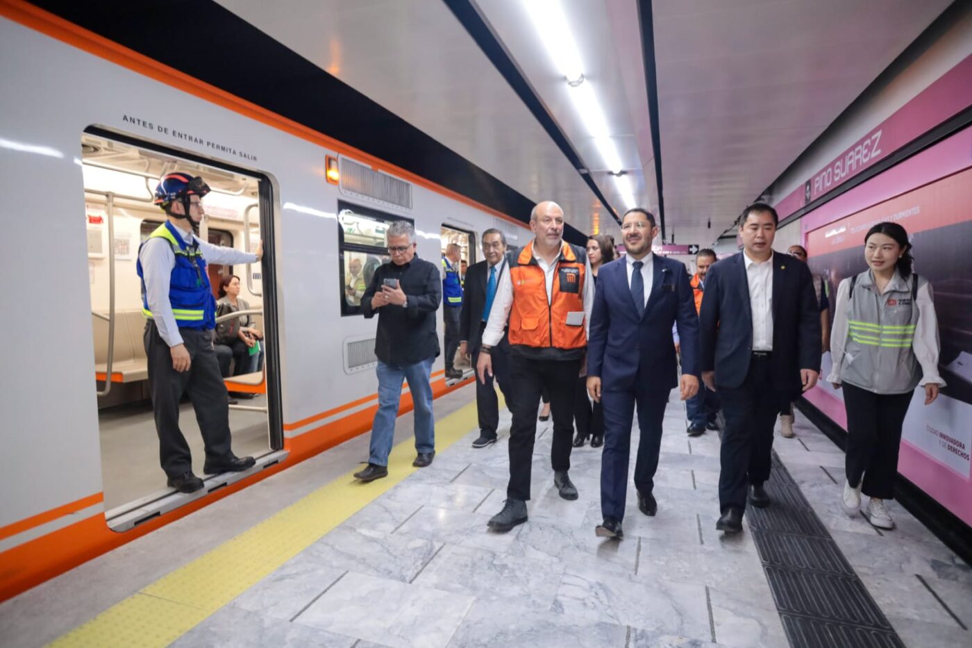 Acompañado por importantes figuras como el secretario de Movilidad, Andrés Lajous Loaeza, y el director del Metro, Guillermo Calderón Aguilera, así como miembros del Consejo Consultivo del Metro, representantes del Sindicato Nacional de Trabajadores del Sistema de Transporte Colectivo y líderes de las empresas responsables de la modernización, incluyendo CRRC, y la Oficina de las Naciones Unidas de Servicios para Proyectos (UNOPS), el Jefe de Gobierno supervisó los avances tecnológicos que se han implementado en esta emblemática línea.