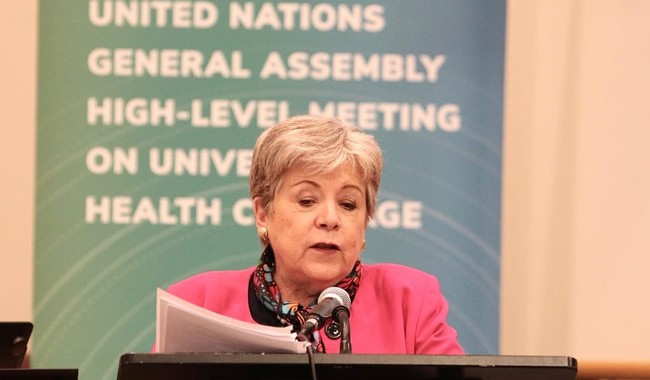 21 de septiembre de 2023. – En el marco de la Asamblea General de la ONU, la secretaria de Relaciones Exteriores de México, Alicia Bárcena Ibarra, destacó el compromiso del gobierno mexicano bajo la dirección del presidente Andrés Manuel López Obrador para garantizar el acceso a la salud a toda la población, en un esfuerzo por lograr un desarrollo sostenible con igualdad.