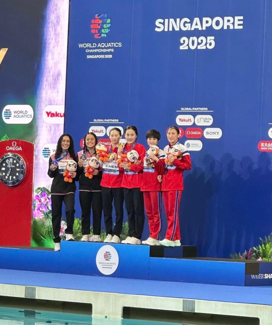 La Selección Mexicana de Clavados sigue dando muestra de su talento y disciplina en el Campeonato Mundial de Clavados 2025, que se celebra en Singapur. Con tres nuevas medallas conseguidas en los últimos días, el equipo nacional acumula ya un total de cinco preseas —cuatro de plata y una de bronce—, consolidándose como la segunda fuerza más destacada del torneo, solo por detrás del imbatible conjunto chino.