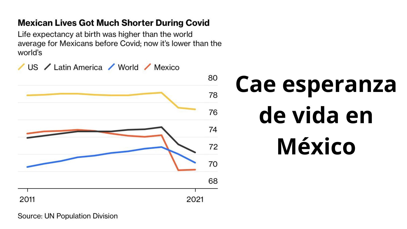 La reducción en la esperanza de vida en México de 2011 a 2021 se debe principalmente a COVID-19 pandemia, que ha tenido un impacto significativo en la región, así como otros factores como la violencia, la obesidad y las enfermedades no transmisibles.