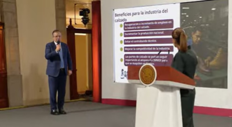 Ebrard explicó que el régimen de importación temporal permitía traer productos por un tiempo limitado para incorporarlos a otros bienes exportables sin pagar IVA. “Hoy se publica en el Diario Oficial el decreto que suspende la importación temporal de calzado terminado. Nos pidió la presidenta que se preparara el decreto y nos hizo el favor de promoverlo”, señaló.
