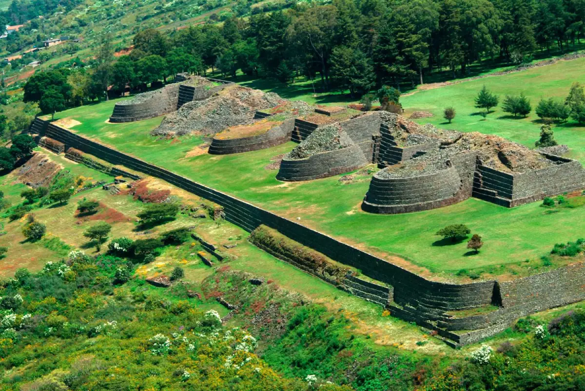 La joya más célebre de esta corona arqueológica es sin duda la zona de Las Yácatas, en Tzintzuntzan, que significa «lugar de los colibríes». Este sitio fue el corazón político y religioso del imperio purépecha. Lo que más impresiona al visitante son sus cinco grandes plataformas escalonadas, o yácatas, de planta mixta (rectangular y circular), únicas en Mesoamérica. Erigidas sobre una gran terraza con vista al lago de Pátzcuaro, estas estructuras dedicadas a Curicaveri, dios del sol, hablan del poderío y la ingeniería de un pueblo que supo dominar el paisaje. Hoy, este escenario no solo recibe turistas, sino que se convierte en un foro vivo durante la celebración de la K’uínchekua, una festividad que revive la ceremonia purépecha de fuego nuevo, demostrando que la historia aquí respira.