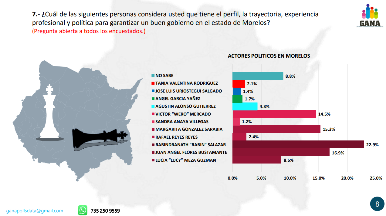 La renombrada casa encuestadora ‘Gana’ ha lanzado luces sobre el panorama político en Morelos hacia las elecciones del 2024, destacando un escenario sumamente favorable para Rabindranath Salazar Solorio y la coalición MORENA.