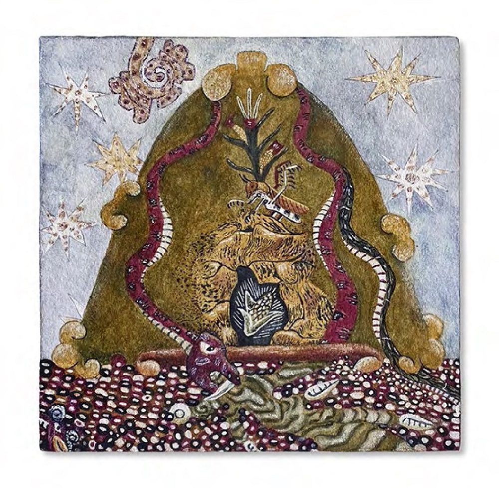 La exposición consta de 10 piezas autoría de Santiago Robles y una del paisajista Nicolás Moreno que dialoga con el resto de las obras, las cuales están construidas a partir del ensamblaje de miles de semillas y que además de su sentido estético buscan crear diálogo y reflexión acerca del consumo del maíz en el país.