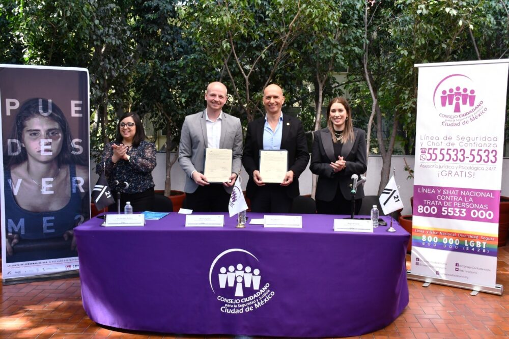 Ciudad de México, 11 de noviembre de 2022.- La organización internacional A21 y el Consejo Ciudadano para la Seguridad y Justicia de la Ciudad de México refrendaron su alianza para impulsar la campaña “¿Puedes verme?”, y concientizar sobre la importancia de visibilizar el delito, en el que la mitad de las víctimas son menores de edad.