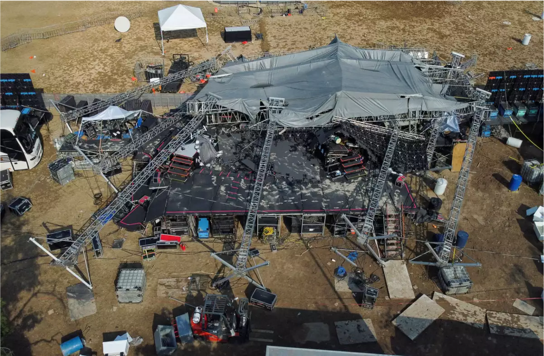 El candidato presidencial Jorge Álvarez Máynez, de Movimiento Ciudadano, se encontraba en pleno discurso junto a otros líderes del partido cuando una tormenta desató el caos, haciendo que parte de la estructura del escenario se desprendiera y cayera.
