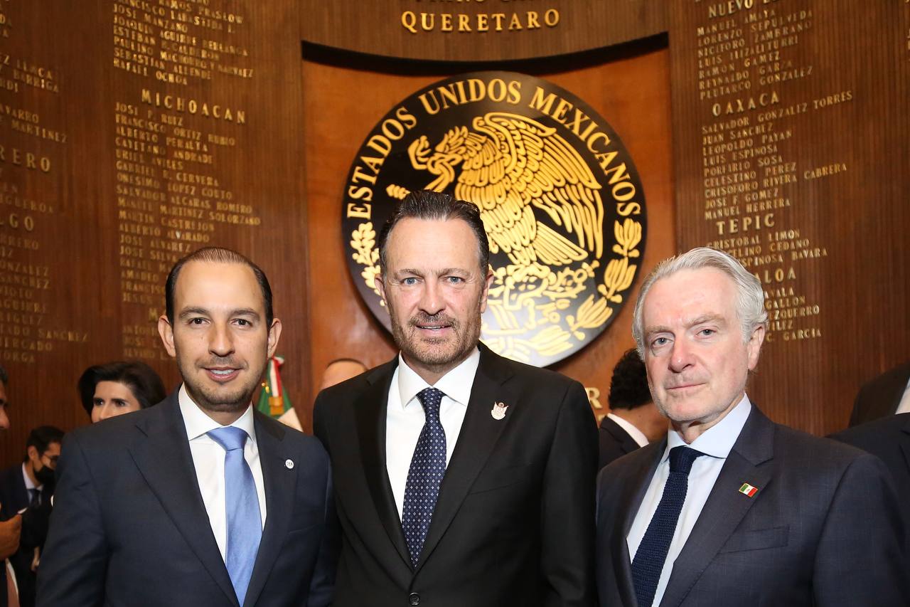 • Acude al Primer Informe de Gobierno de Mauricio Kuri, acompañado del presidente de la Mesa Directiva en la Cámara de Diputados, Santiago Creel; y del coordinador en el Senado, Julen Rementería.