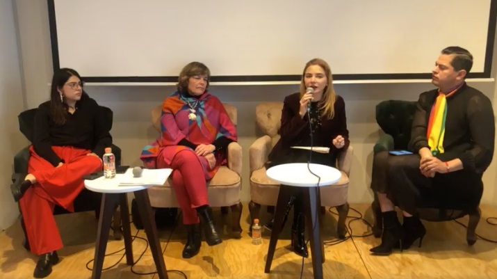 Acompañaron a la Consejera Carla Humphrey, Teresa Hevia Rocha especialista en temas de género y Jesús Ociel Baena Saucedo, primera persona en América Latina, con identidad de género no binaria, en ocupar una magistratura en el Tribunal Electoral del Estado de Aguascalientes.