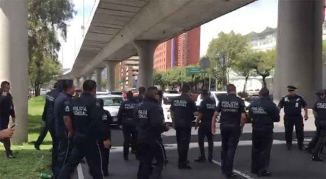 Veinte elementos de la Policía Auxiliar en Prolongación Paseo de la Reforma y Avenida Tamaulipas, alcaldía Cuajimalpa se manifiestan por presuntos malos tratos de sus mandos.