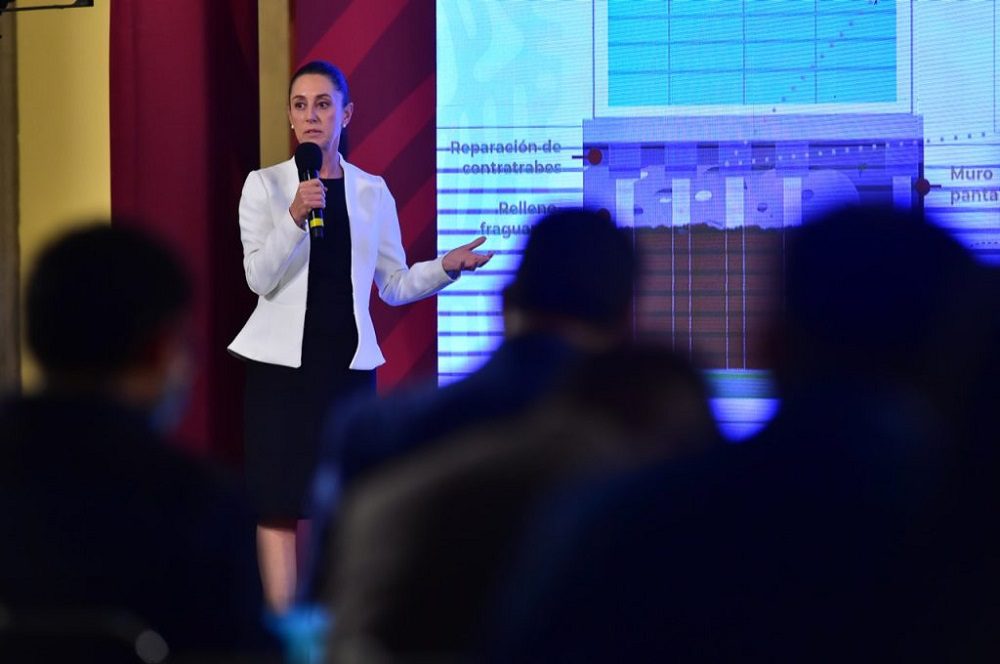 “En este momento ya va a iniciar el sellado de las contratrabes y después va a haber una excavación y el relleno permanente. Si hay un hundimiento adicional pues en algunos años tiene que volver a haber otro relleno para poder resolver el problema de que las pilas no estén expuestas”, explicó. La mandataria local explicó que el Instituto para la Seguridad de las Construcciones en la Ciudad de México determinó que la Terminal 2 del AICM no tiene grandes riesgos, pero es necesario que se intervenga como medida precautoria ante los sismos, ya que el edificio que se construyó es muy pesado, lo que provoca oquedades entre las pilas y el suelo, y grietas en las contratrabes.